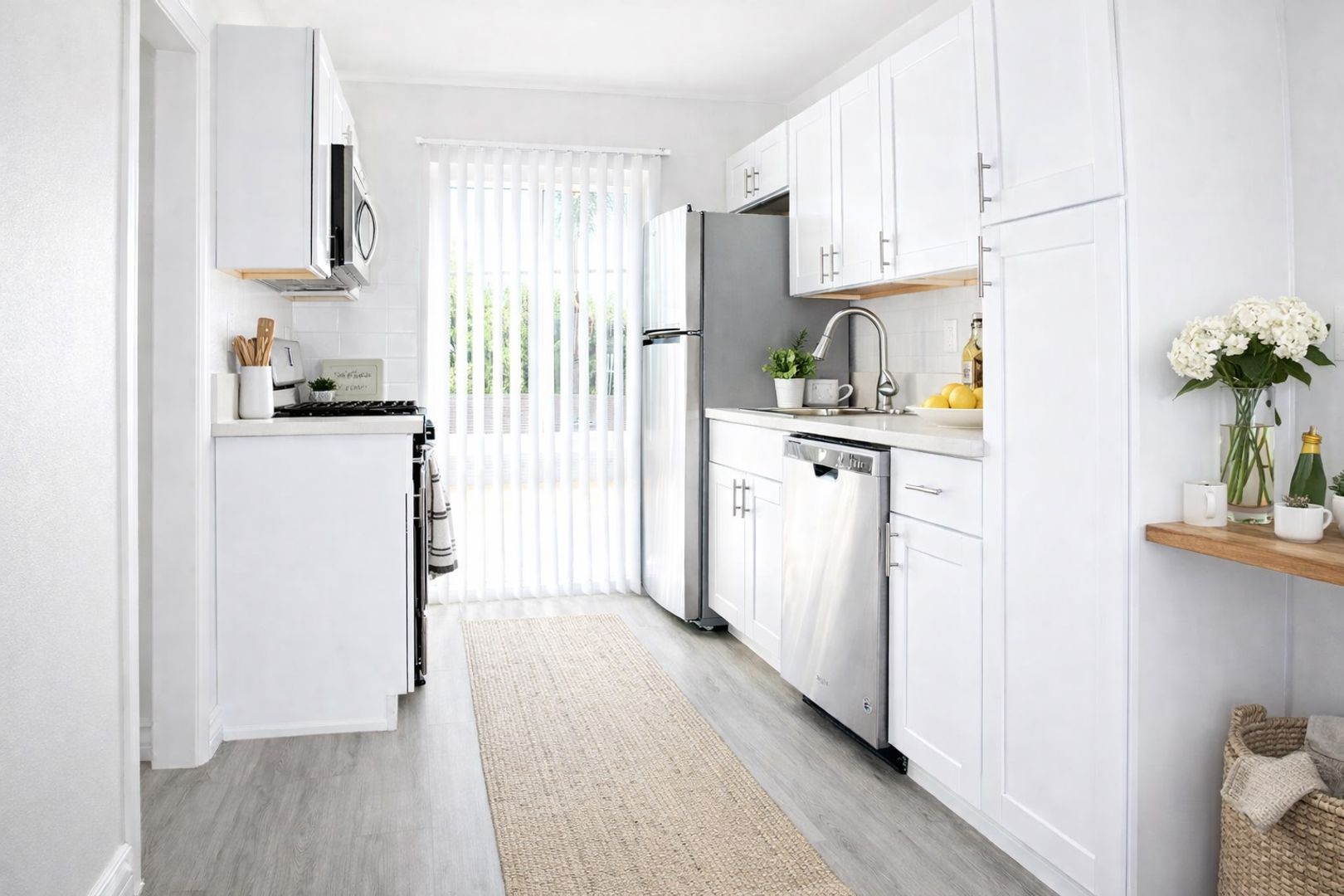 NEW TWO TONE DESIGNER PAINT.A/C IN THE LIVIN ROOM DISHWASER, GAS STOVE OVEN GAS, LAMINATE THIS UNIT IS NON SMOKING UNIT.