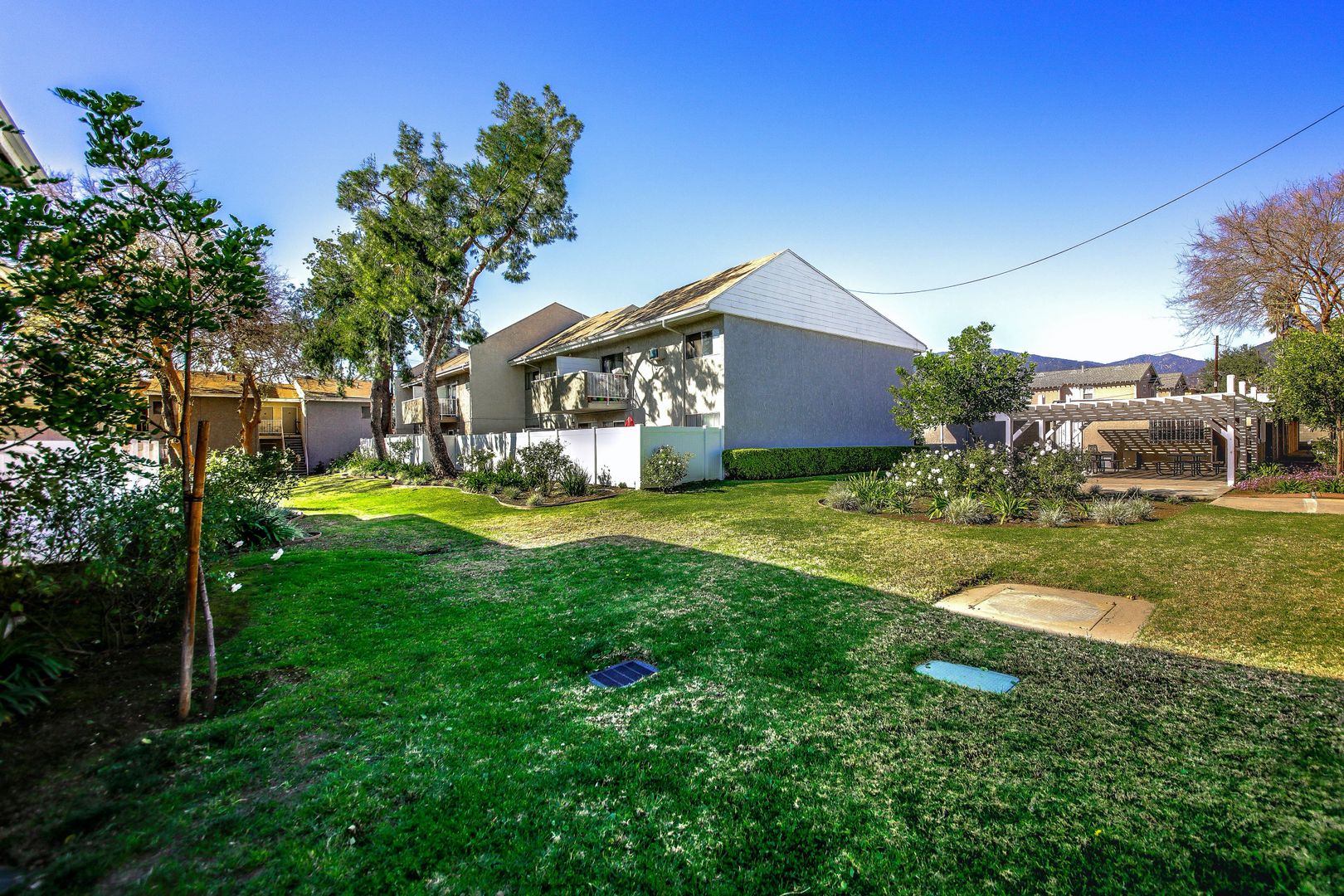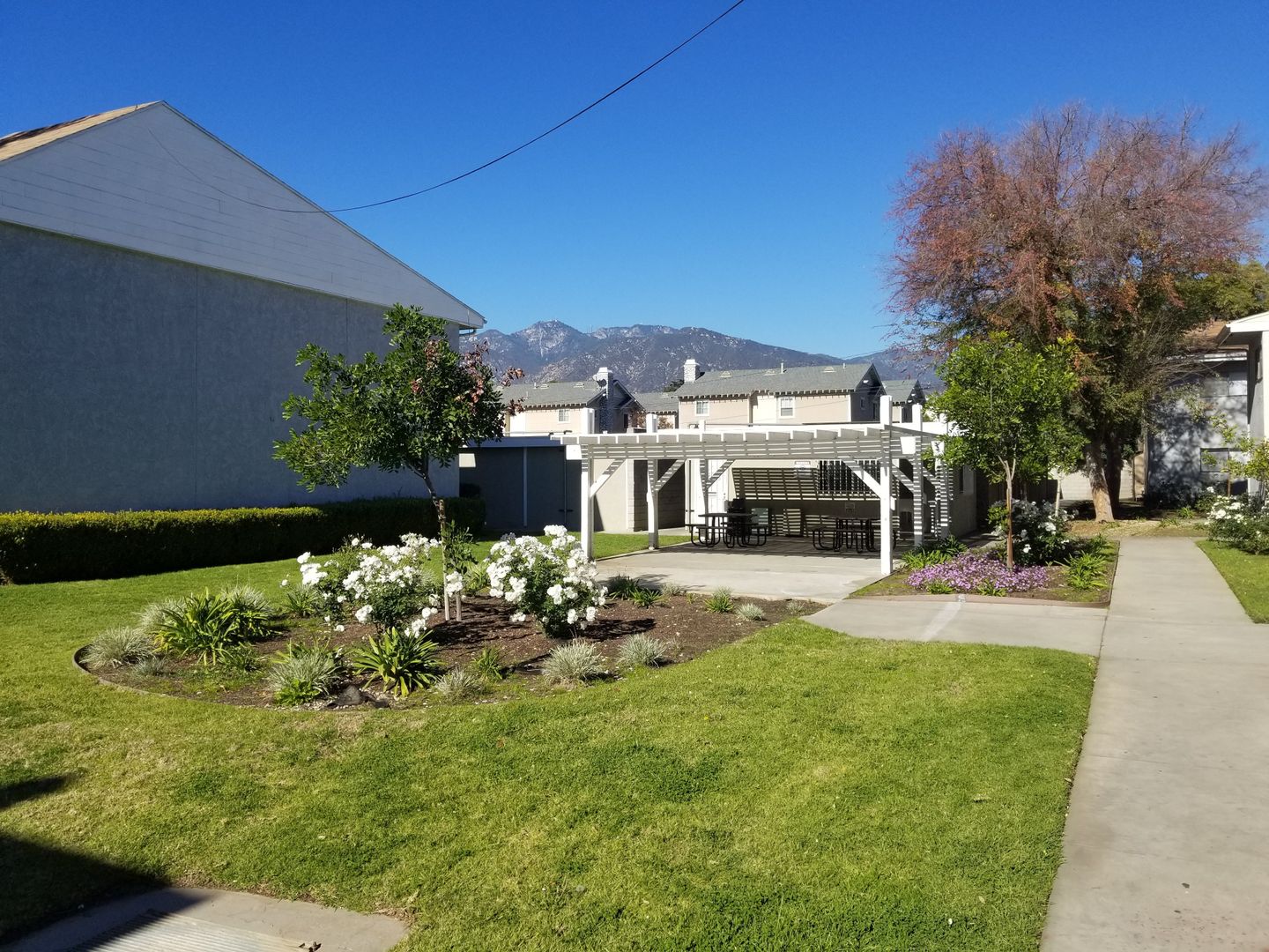 Large garden areas and picnic table courtyard