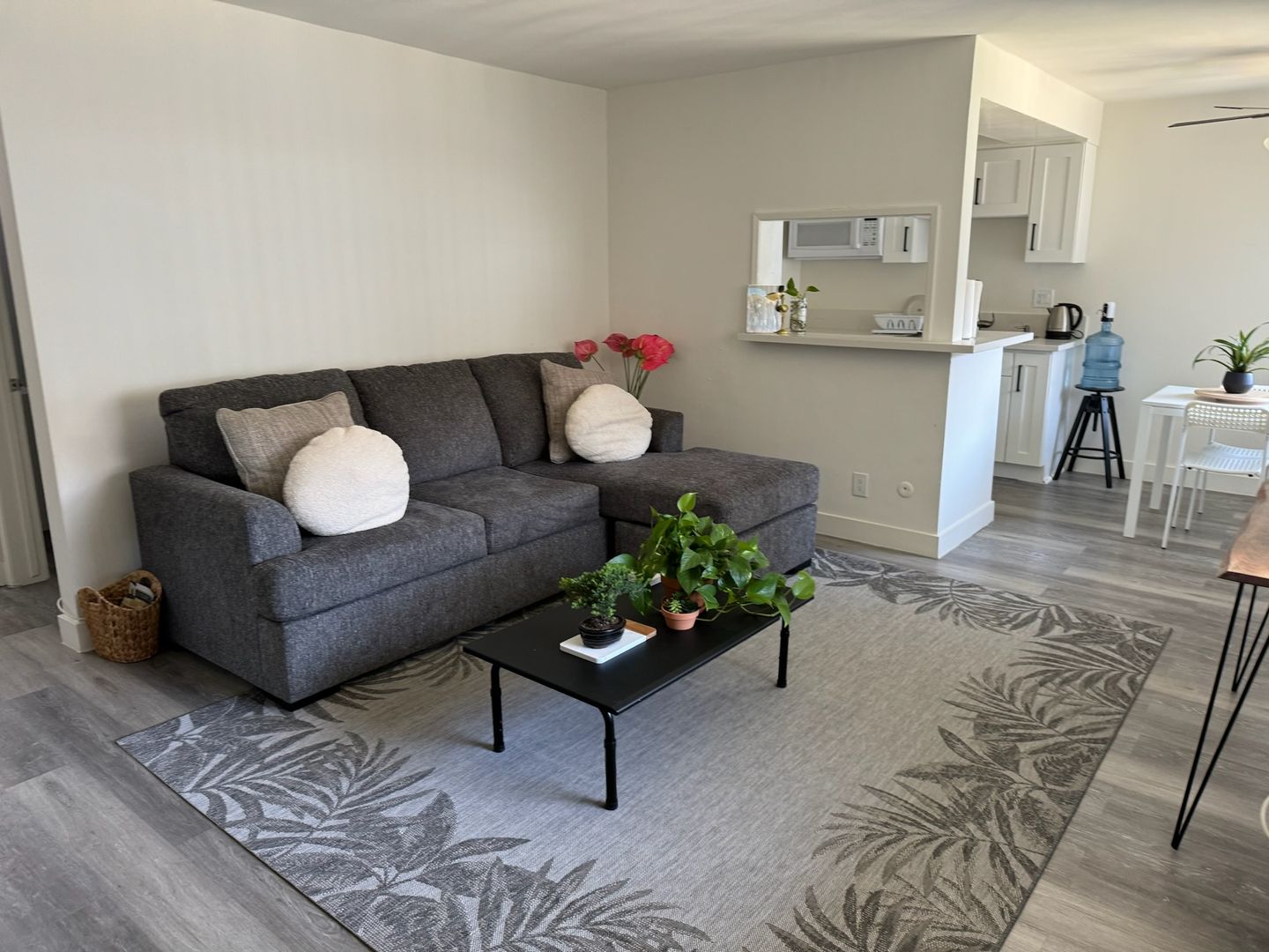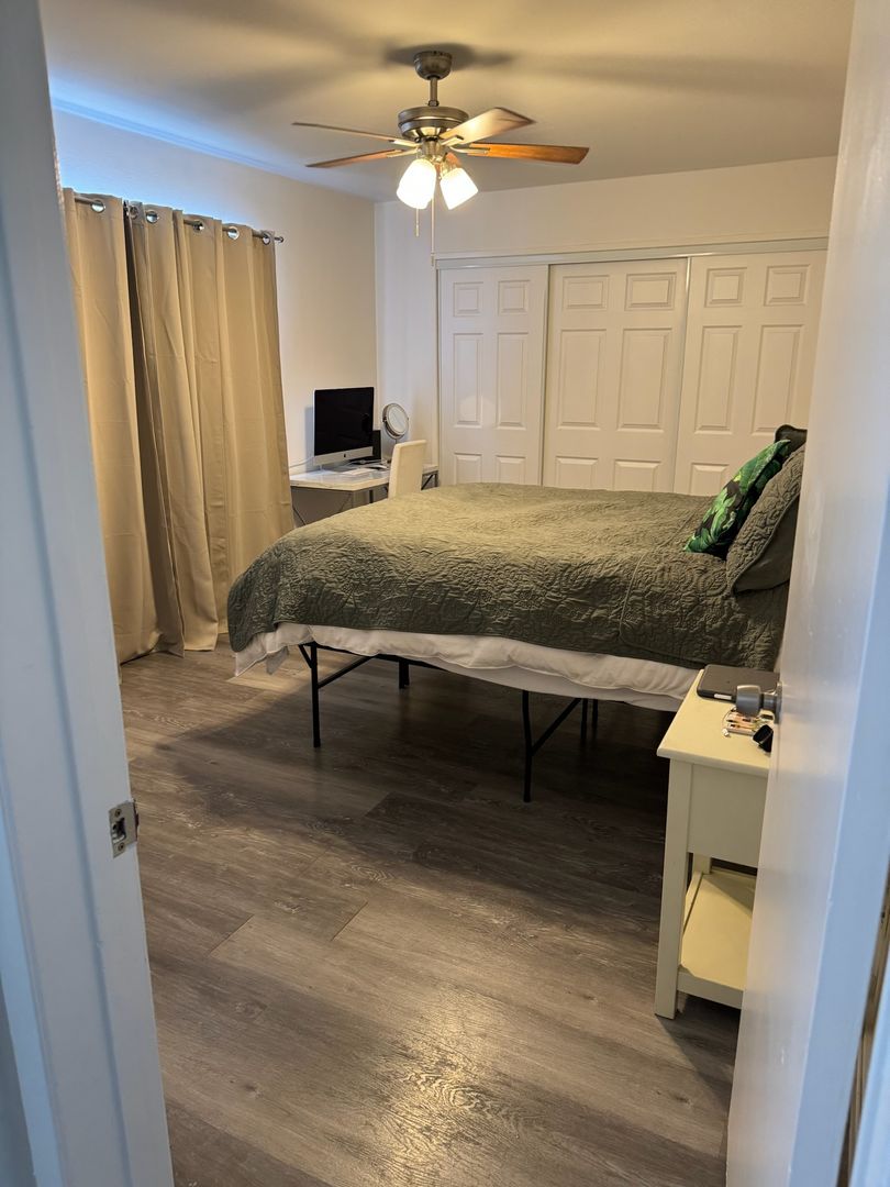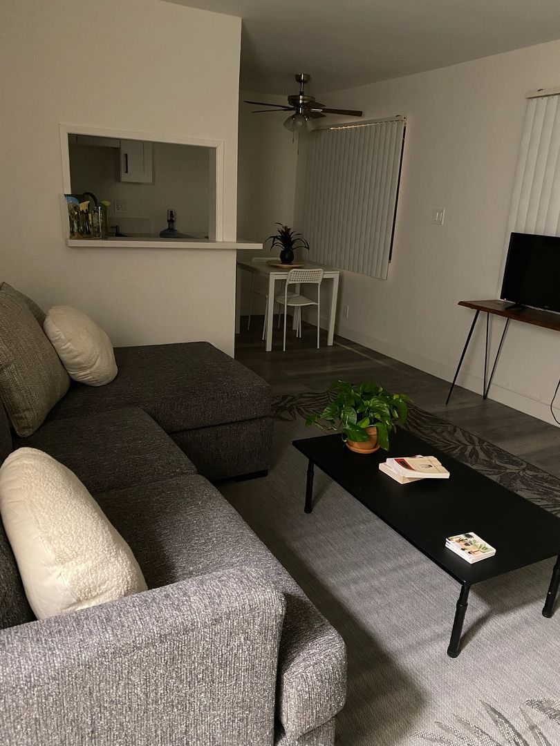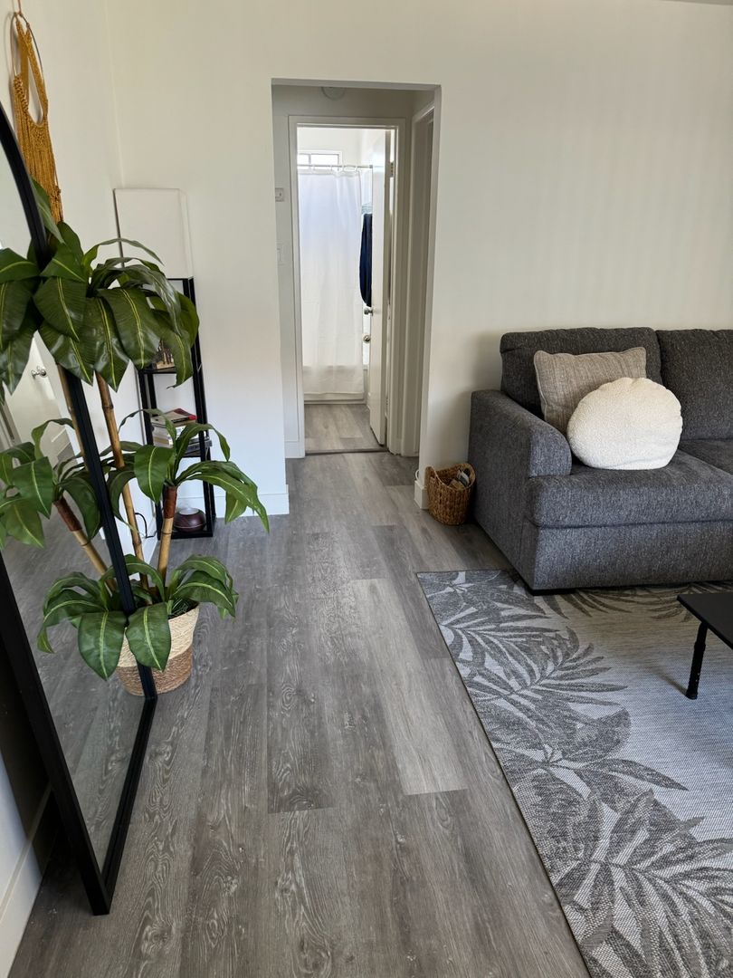 Our accommodations embraces modern wood floors, Cream and White designer paint colors, a modern kitchen with New Granite counter-tops and Ceiling light fixtures with Chrome or Brass accents. Newly renovated to include all in one Washer and Dryer in unit, all appliances included.