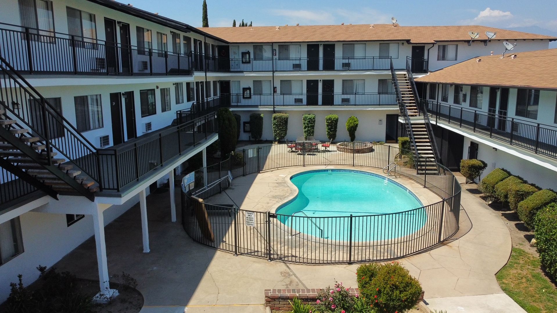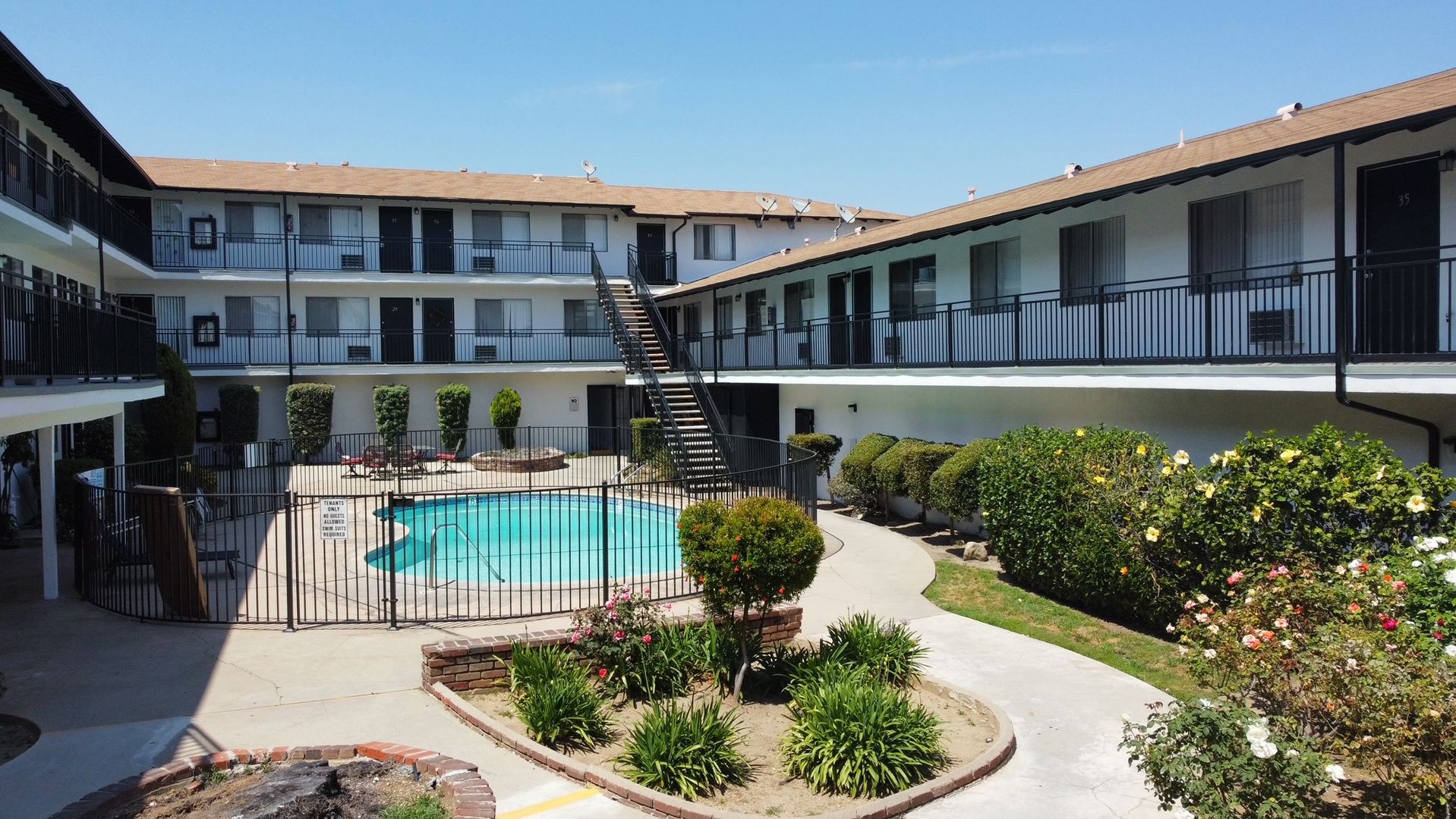 Our serene gated community offers a Spanish architectural style exterior. Featuring a comfortable and inviting court yard, private resident pool, and convenient laundry access.