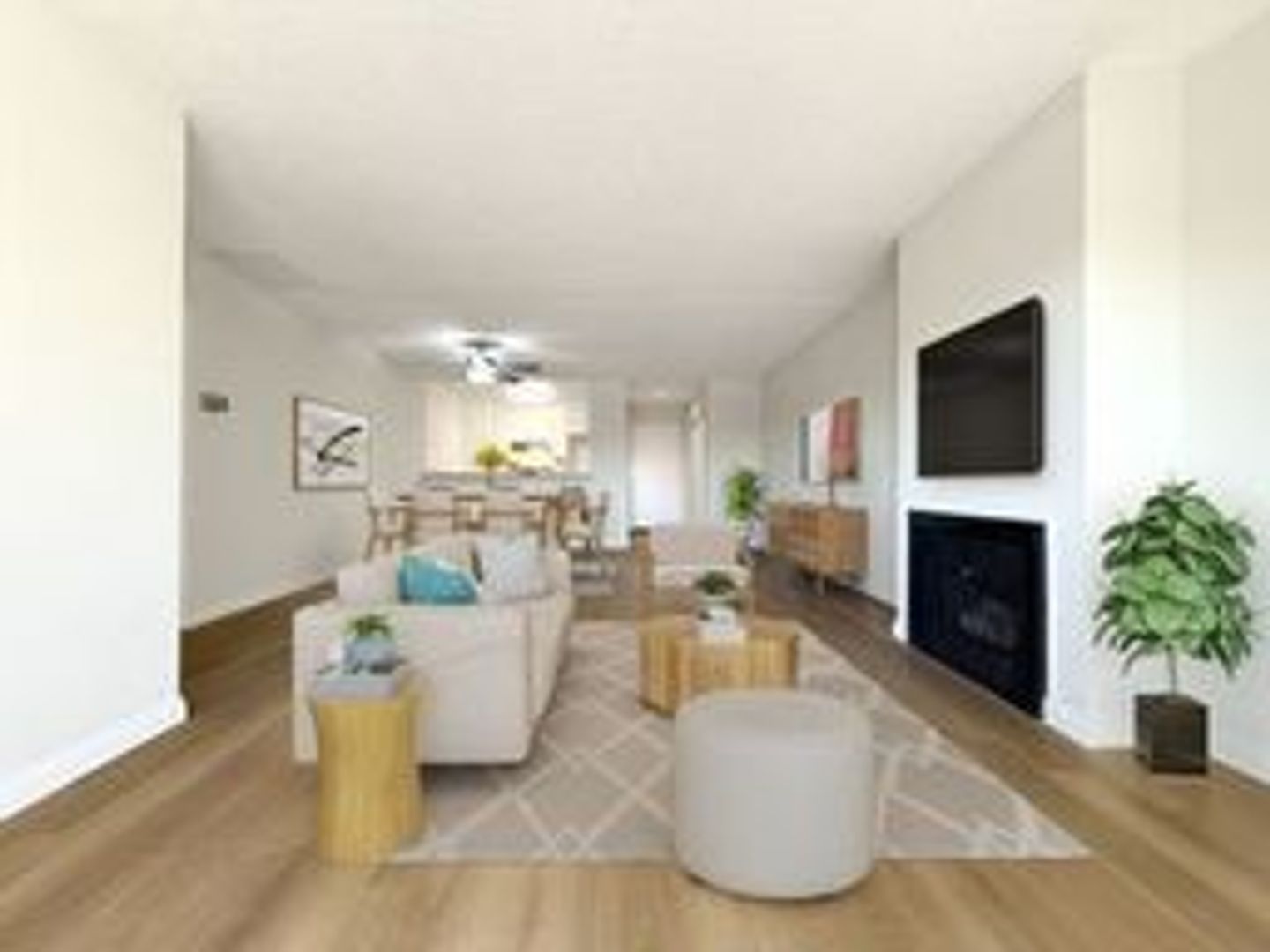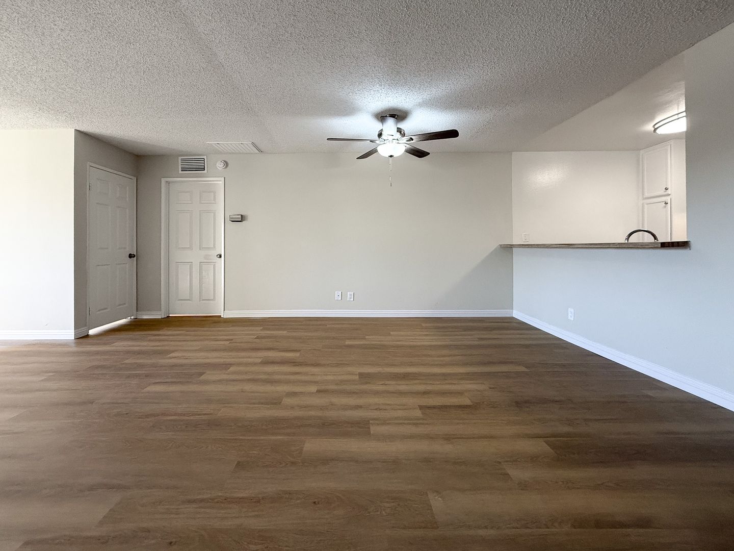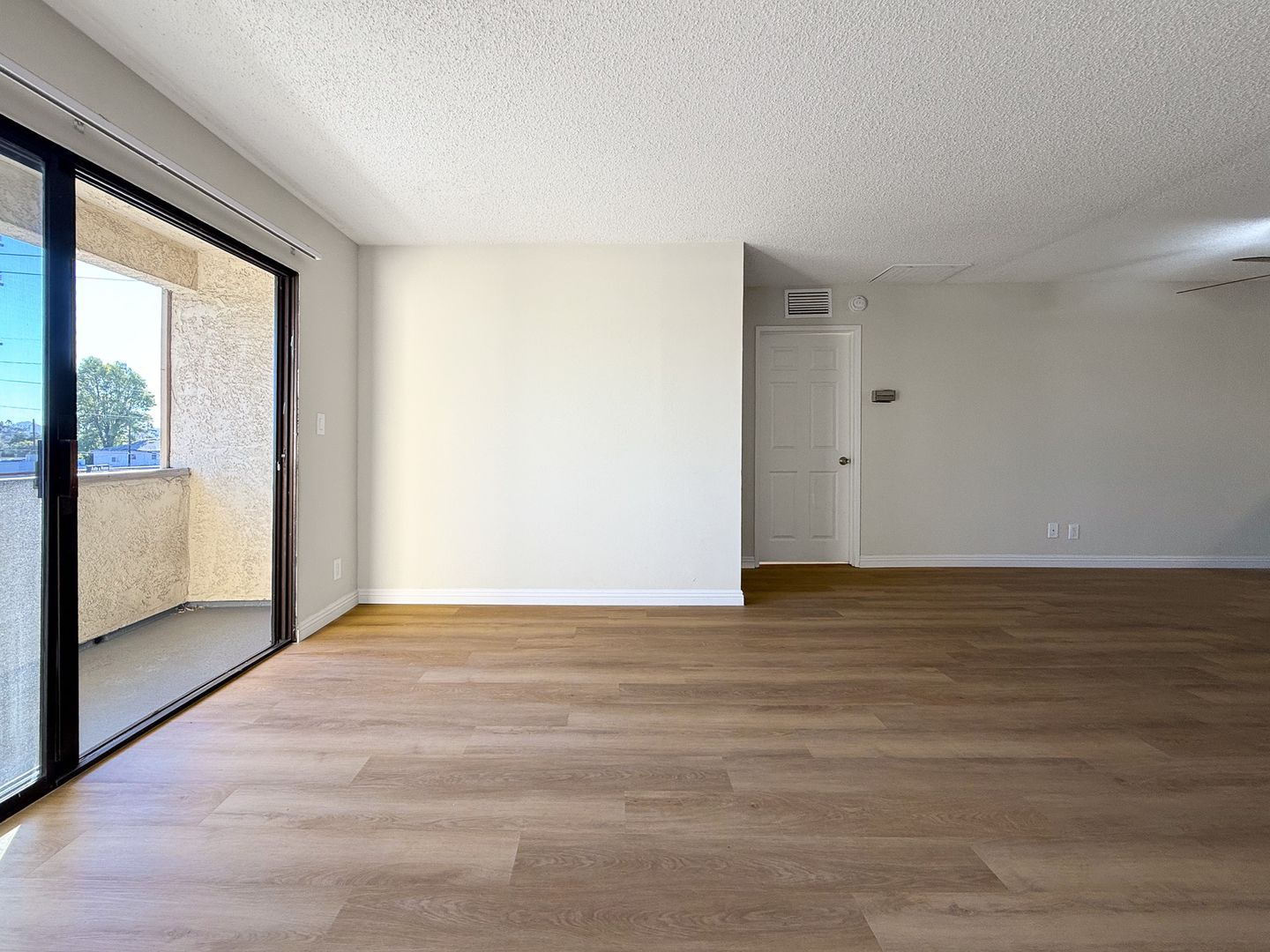 Wood-Like Plank Flooring in Living Room and Bedroom