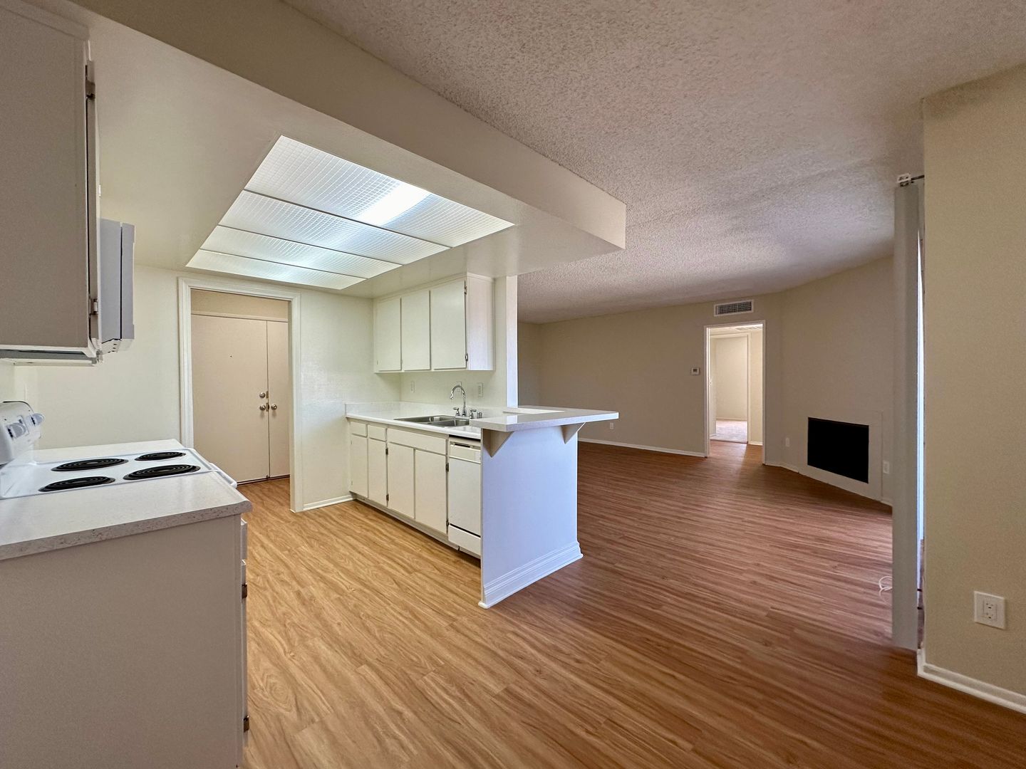 We offer a spacious, 2Bdr/2Bth professionally painted unit featuring re-glazed counters in kitchen and bathrooms, new built-in microwave, electric stove w/oven and dishwasher, new fan w/lights in dining, brand new wall-to-wall carpet 2 bedrooms and brand new LVT in the entry way, kitchen dining area, living room, hallway and both bathrooms, central A/C and Heat, large Balcony, Fireplace, four large closets and amazin view.