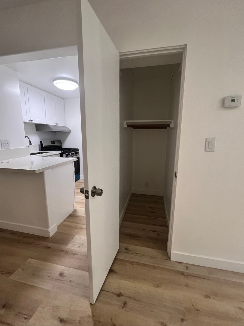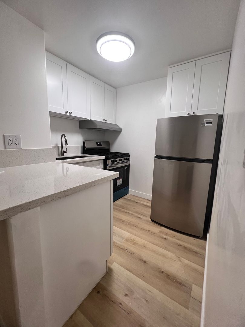 The open floor space has a view to the back patio, with lots of natural lighting. New Refrigerator is included as well as a new gas stove. Separate Kitchen and living quarters. Stand up Shower with vintage tiled bathroom, and walking distance to Mid Wilshire Cafe’s for some amazing night life experiences in LA.