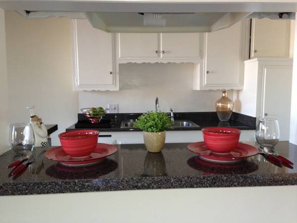 Our accommodations embraces Dark Mahogany wood floors, Mocha colored carpet, Cream and White designer paint colors, a modern kitchen with Granite counter-tops and Ceiling light fixtures with Chrome or Brass accents.
