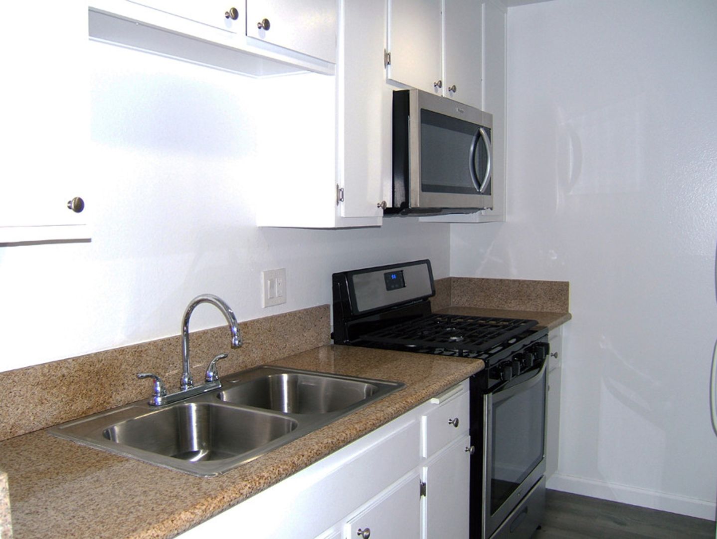 Granite counters in kitchen and vanity.