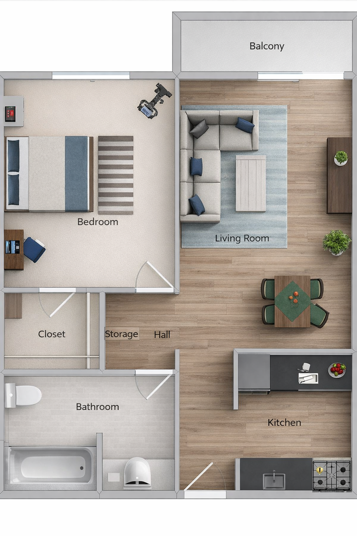 This one bedroom, 1 bath is approximately 700 sqft and features stainless steel appliances (microwave, gas range, dishwasher, and refrigerator), AC/Heat, ceiling fan, upgraded fixtures, a balcony and tons of storage!